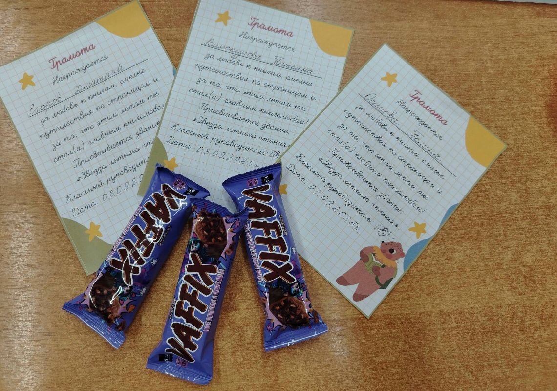 В конце классного часа прозвучали имена лучших читателей лета. Ребятам вручили грамоты "Звёзды летнего чтения" и сладкий приз. Многие ребята отметили, что благодаря чтению они стали лучше писать и говорить, а также узнали много нового об окружающем мире. Некоторые рассказали, как книги вдохновили их на собственные творческие проекты – кто-то начал писать стихи, а кто-то рисовать иллюстрации к любимым произведениям.