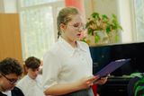 Учащиеся 8 "Б" класса приняли участие в театральной постановке «Памяти Зои» и выступили перед учащимися 8 и 6 классов.