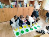 Во время перемен ребята играют в "Твистер", который они выиграли на районном конкурсе "Безопасное колесо".