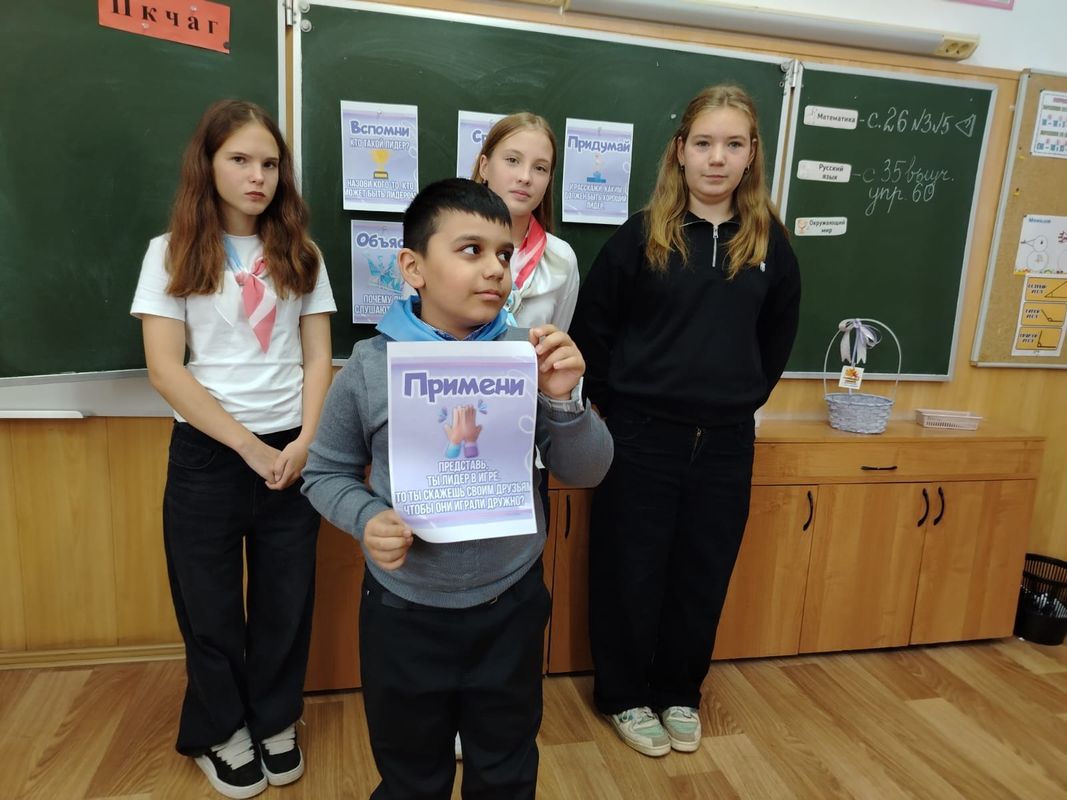 В рамках Всероссийского проекта "Орлята России" наставники 7 "А" класса провели игры на выявление лидера, выяснили какими качествами должен обладать лидер, у кого из ребят есть такие качества, что нужно делать чтобы им стать.