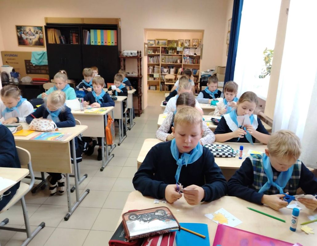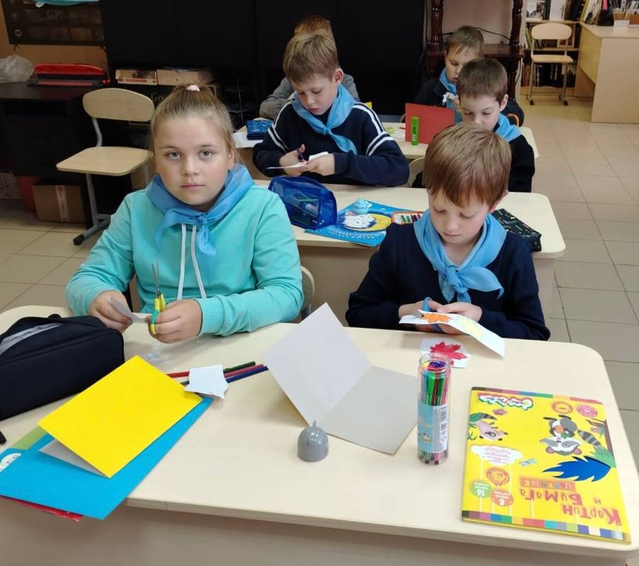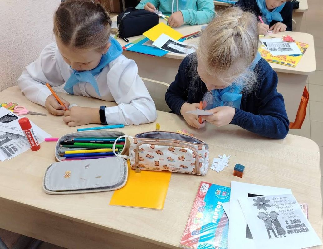 Ученики 3 "А" класса приняли участие в мастер-классе по изготовлению поздравительных открыток в ЦКиДе.