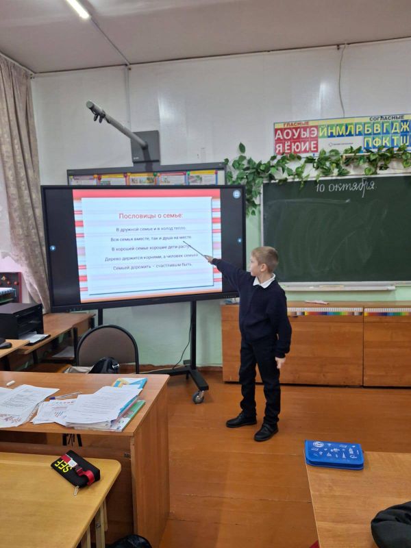 На занятиях "Добротолюбие" первоклассники изучили значение слова "семья", семейные правила и пословицы. Они обсудили поведение главного героя Игоря и важность уважения и ответственности. Дети нарисовали свои семьи и устроили выставку ярких и трогательных рисунков.