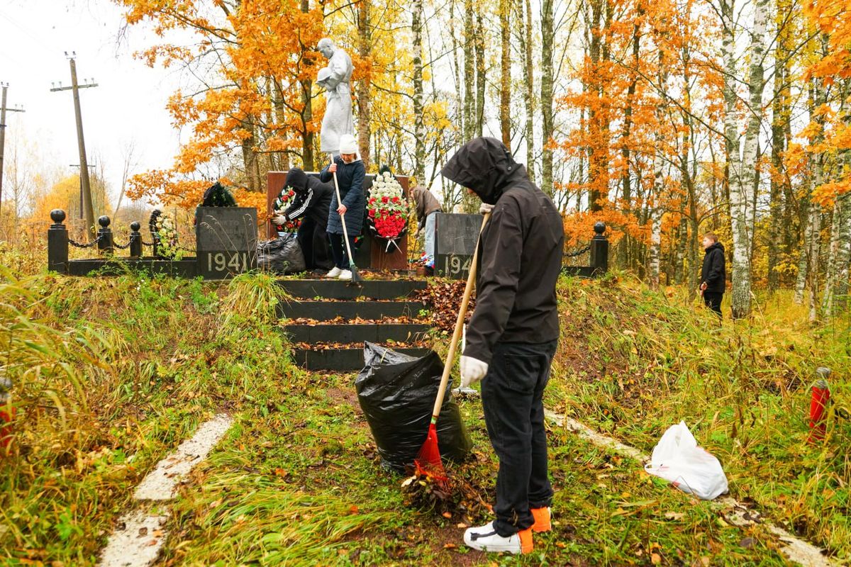 Ученики 10 школы поучаствовали в акции «Хранители истории». В рамках акции они провели уборку на братском захоронении на улице Федосихинская г. Бологое.