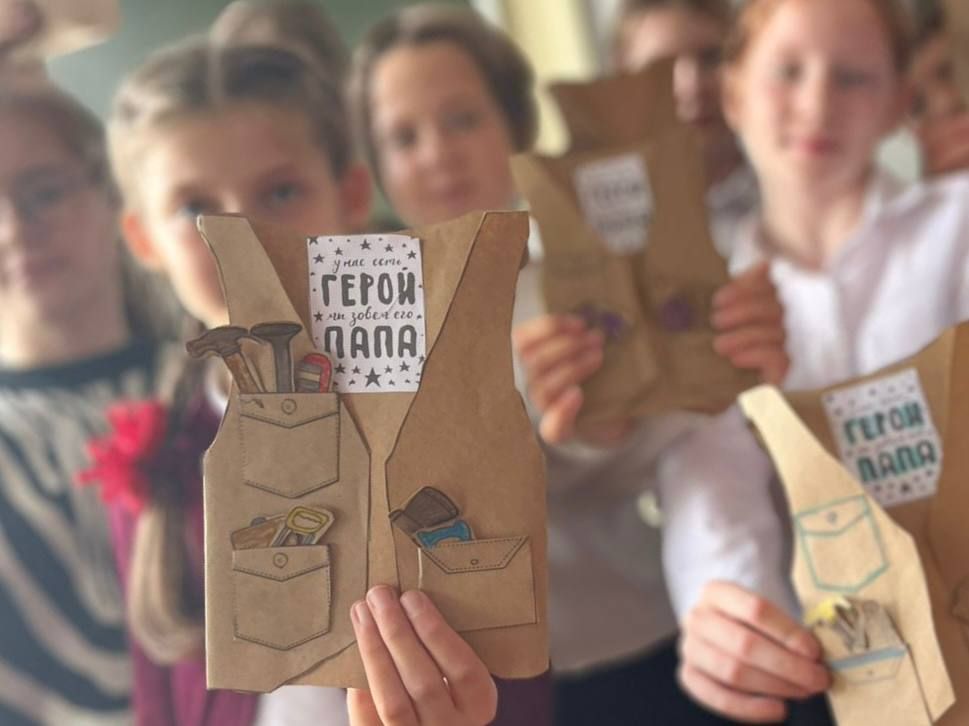 Учащиеся начальной школы создали открытки для пап. В преддверии Дня отца, педагоги организовали творческие мастер-классы.