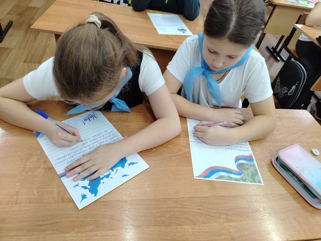 Третьеклассники написали письма солдатам, выражая благодарность и поддержку военнослужащим, участвующим в специальной военной операции.