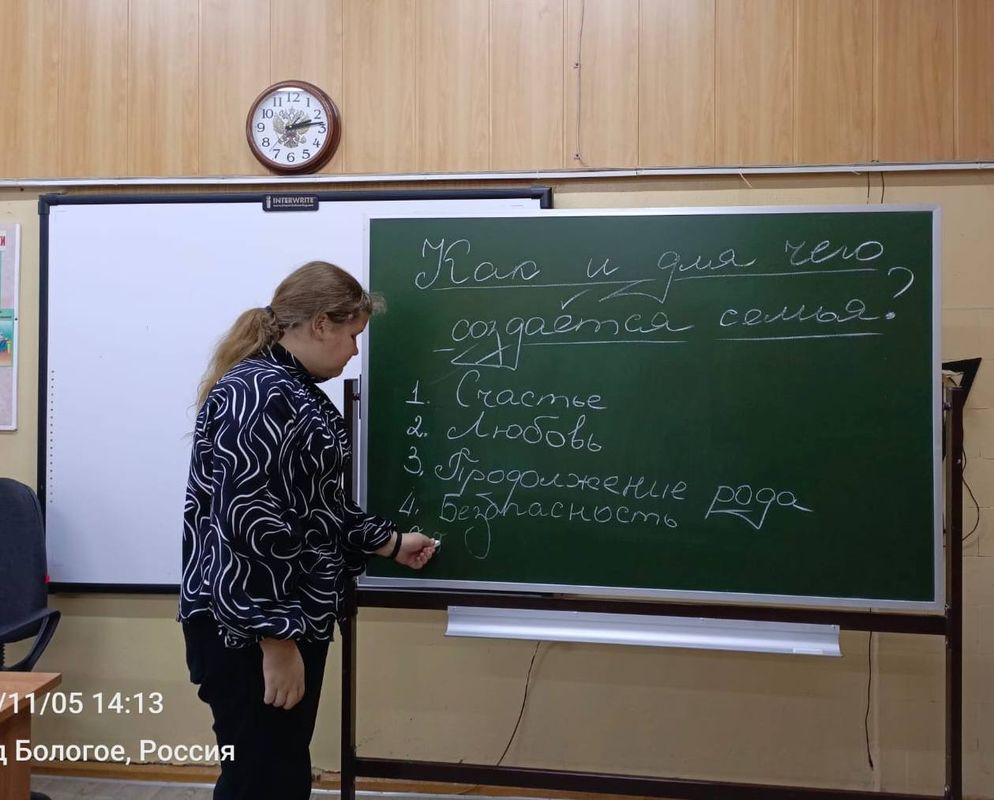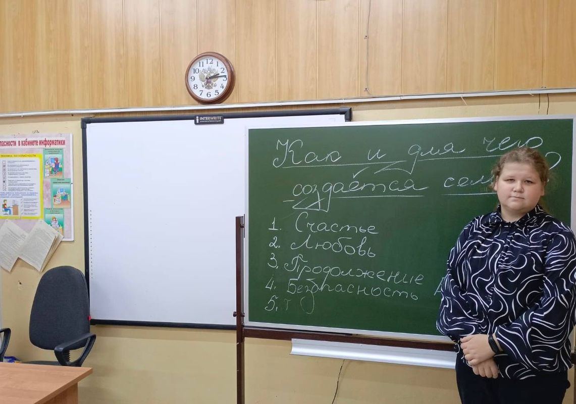 Девятиклассники на занятии "Семьеведение" учились формировать представление о семье как социальном институте и её роли в разные исторические эпохи, пониманию личных ценностей, связанных с выбором спутника жизни и развитию личностных качеств — уважению, ответственности, умению вести дискуссию.