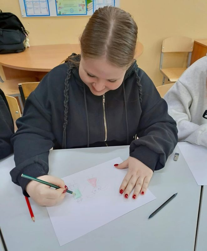 Девятиклассники на занятии "Семьеведение" приняли участие в беседе "Как и для чего создается семья" и создали плакат.