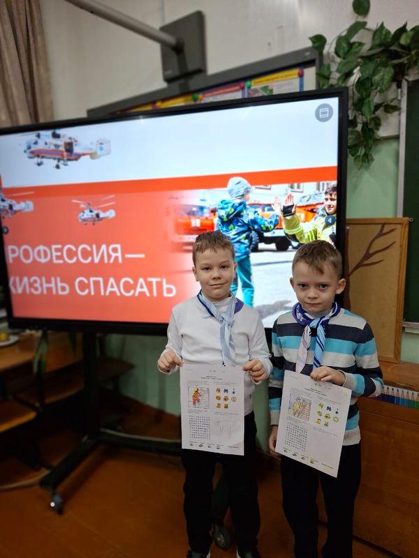 Ребята узнали о важной для страны и общества профессии, о работе МЧС России. Данное ведомство, созданное в 1994 году, защищает граждан по всей стране. Его символ — «Белая Звезда Надежды и Спасения». Она символизирует путь и надежду, а четыре луча — универсальность работы МЧС.