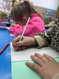 На подготовительных занятиях с учителем Ольгой Игоревной Федоровой будущие первоклассники учились оформлять записи в тетрадях, изучали буквы О и У и познакомились с числами и цифрами 1, 2 и 3.