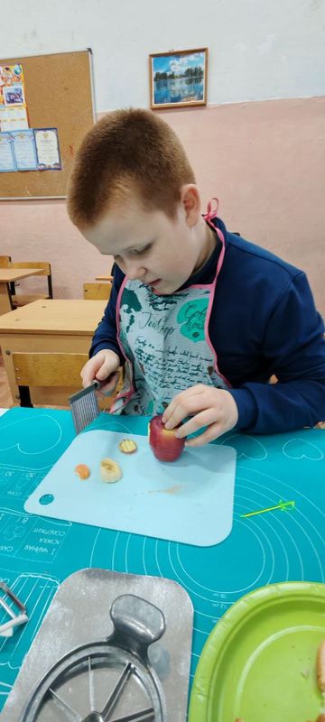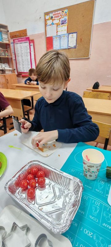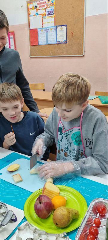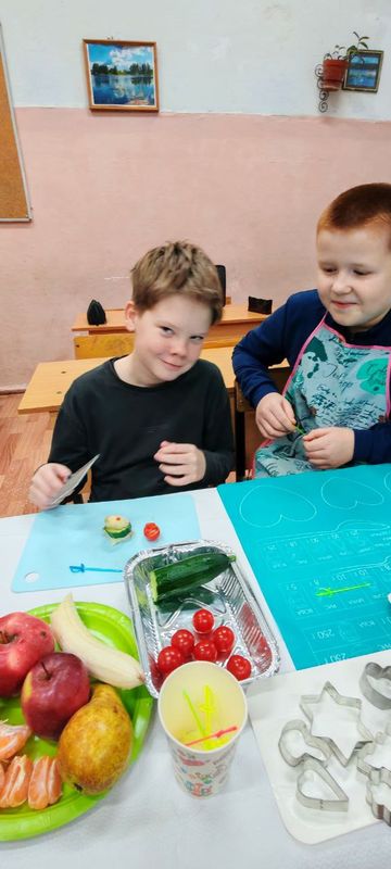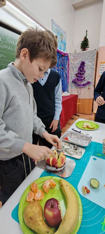 Под руководством учителя Светланы Геннадьевны Васильевой ребята окунулись в мир здорового питания. Ученики узнали о здоровой пище и правильном режиме питания. Они приготовили канапе из овощей и фруктов с фигурными нарезками.