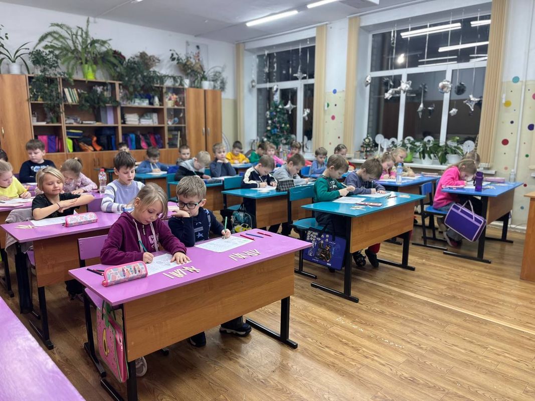 На подготовительном занятии будущие первоклассники вместе с учителем Ольгой Игоревной Федоровой повторяли буквы, изучали новые. Они заполняли таблицу, читали слоги как взрослые, писали первый диктант и учились делить слова на слоги.