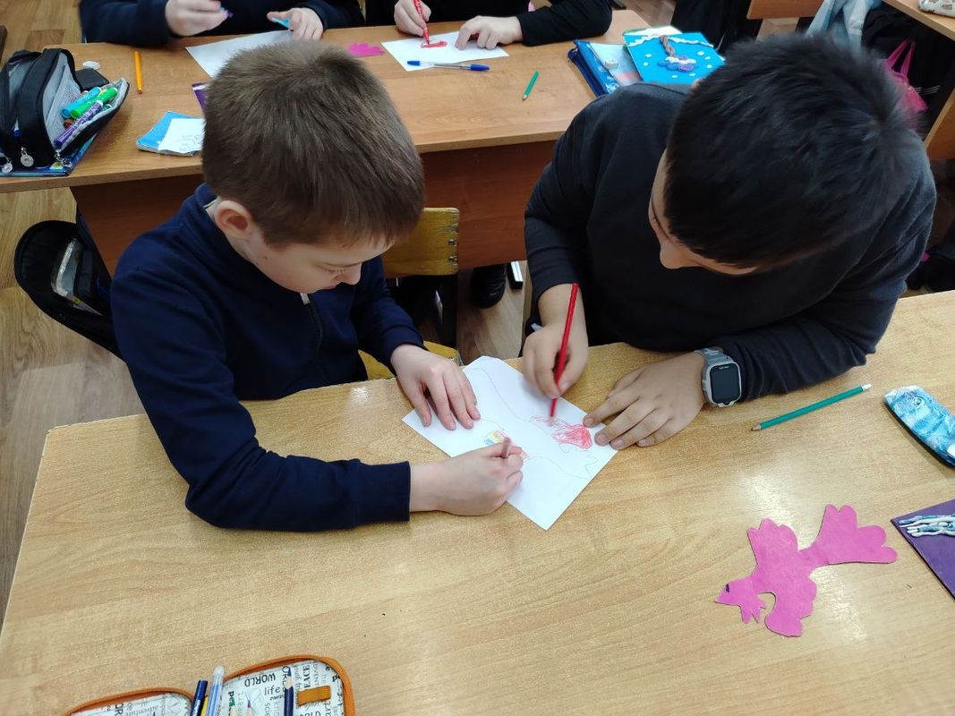 Учащиеся нарисовали рисунок на тему «Упорство и труд». Дети нарисовали волшебную птицу с двумя крыльями: одно — упорство, другое — трудолюбие. Они рассказали, как эта птица будет помогать им в разных делах.