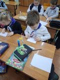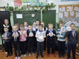 Наставники Первых 5 "А" класса, Валерия Комарова и Виктория Павлова, вместе с первоклассниками создали бумажного снеговика.