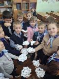 Они сделали разные снежинки из одного квадрата, послушали песню «Я человек» из фильма «Приключения Электроника» и обсудили, какие качества бывают хорошими, а какие — плохими.