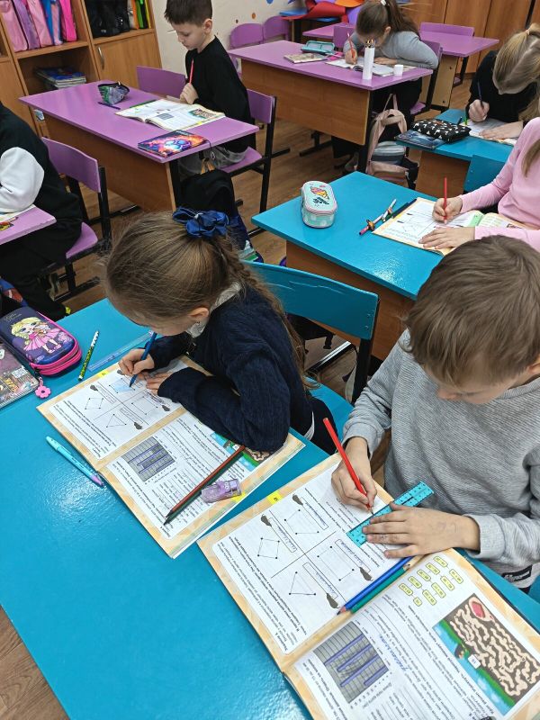 Они учились решать логические задачи, использовать данные из таблиц, анализировать диаграммы, работать с цепочками примеров и определять цвета геометрических фигур по заданным условиям.