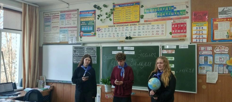 20 марта, по инициативе ООН, весь мир отмечает День Земли. В рамках прохождения трека «Орлёнок — Эколог» наставники Первых 7 «Б» класса — Полина Долинина, Злата Птичкина и Егор Федотов — рассказали Орлятам 2 «А» класса об этом важном событии.